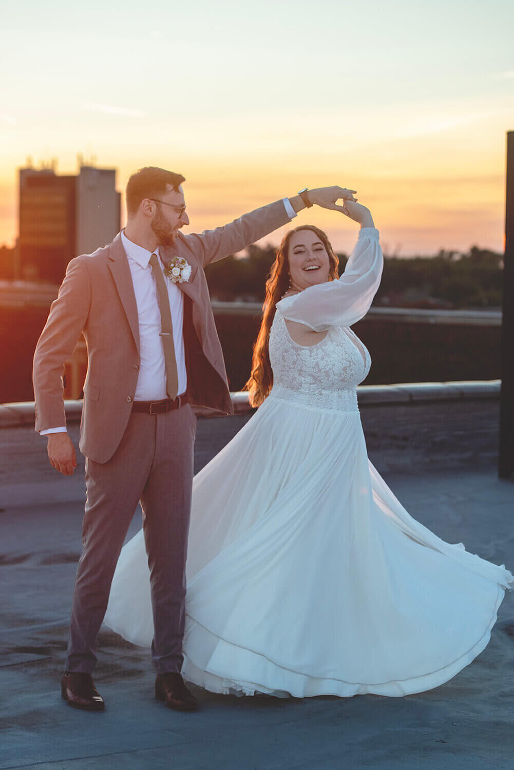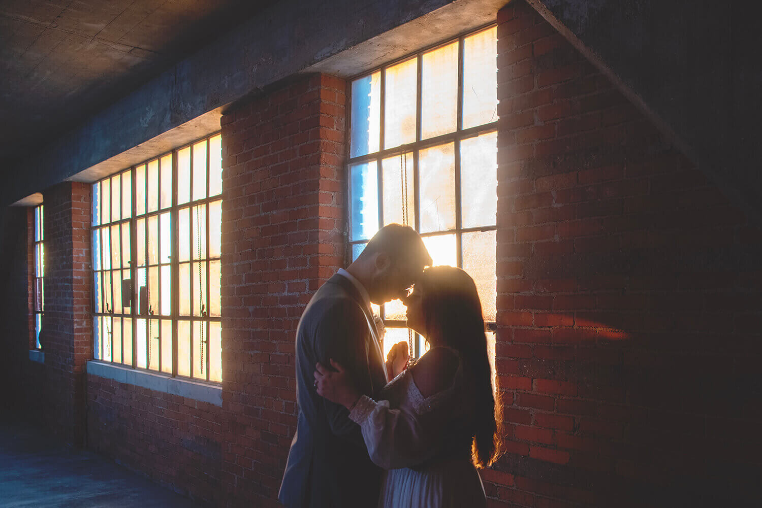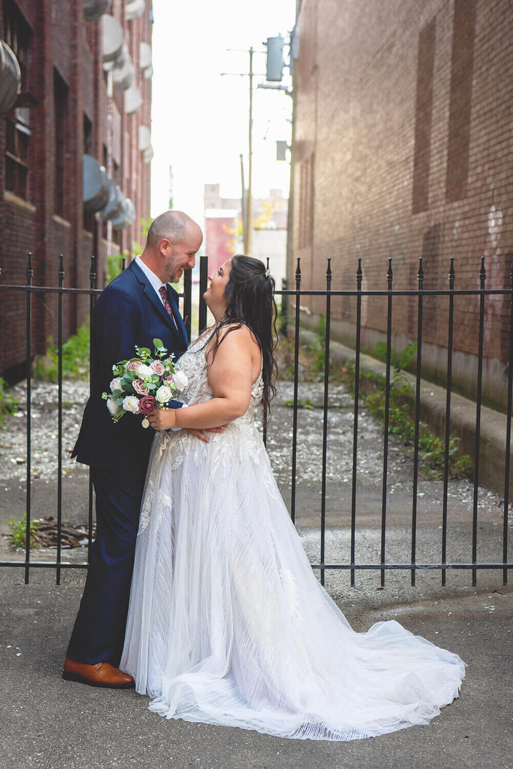 What I love the most about wedding photography at Grand River Hall is the roof. I mean, come on. It’s pretty incredible. While it is sometimes difficult for full bridal party portraits in the middle of the day (with wind and direct sunlight), it is absolutely the best place to be at golden hour and sunset with the bride and groom. Amazing views, city vibes, and what can be a gorgeous sunset is magic here. I also lowkey love the alley across the way and the busted windows on the factory next door.