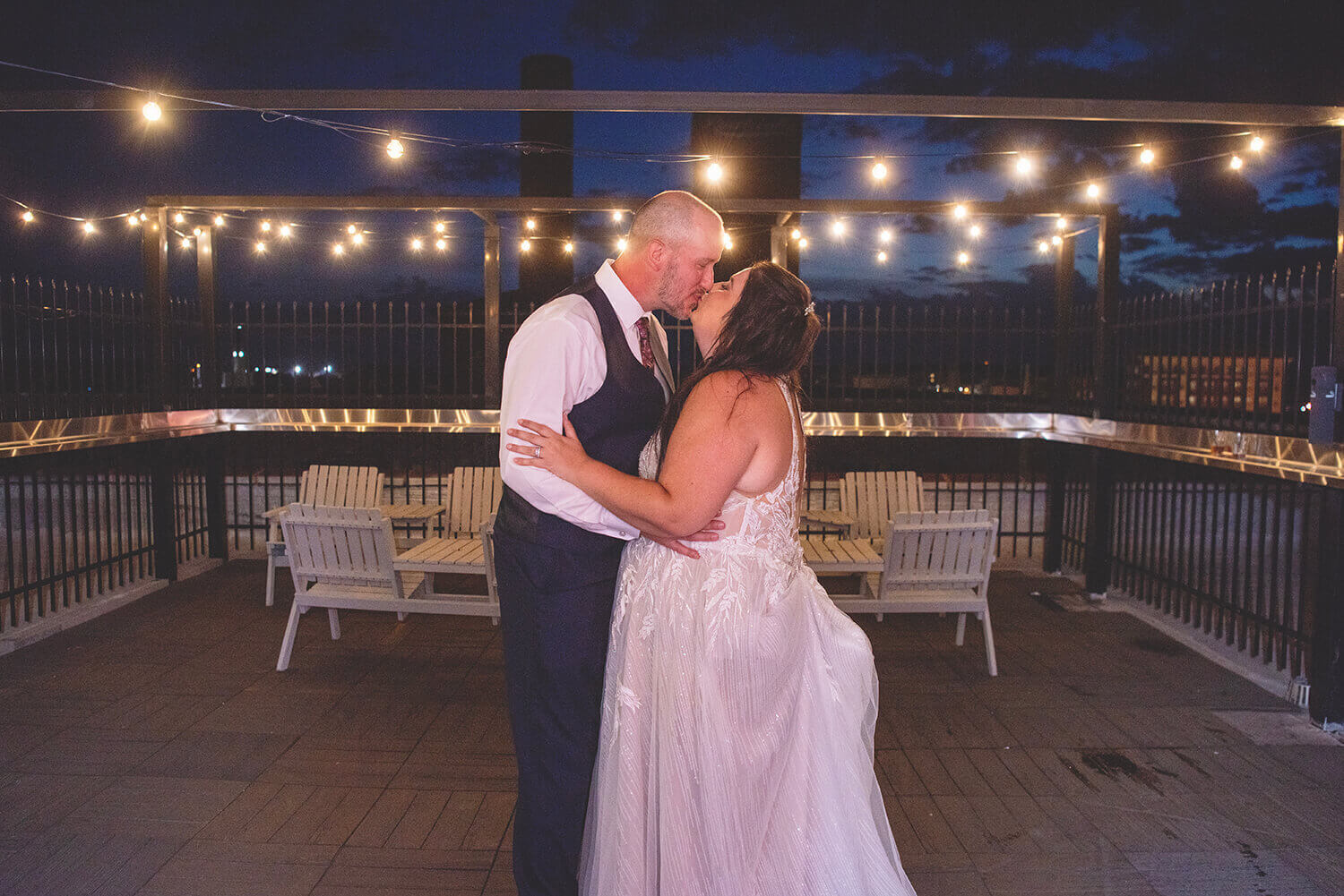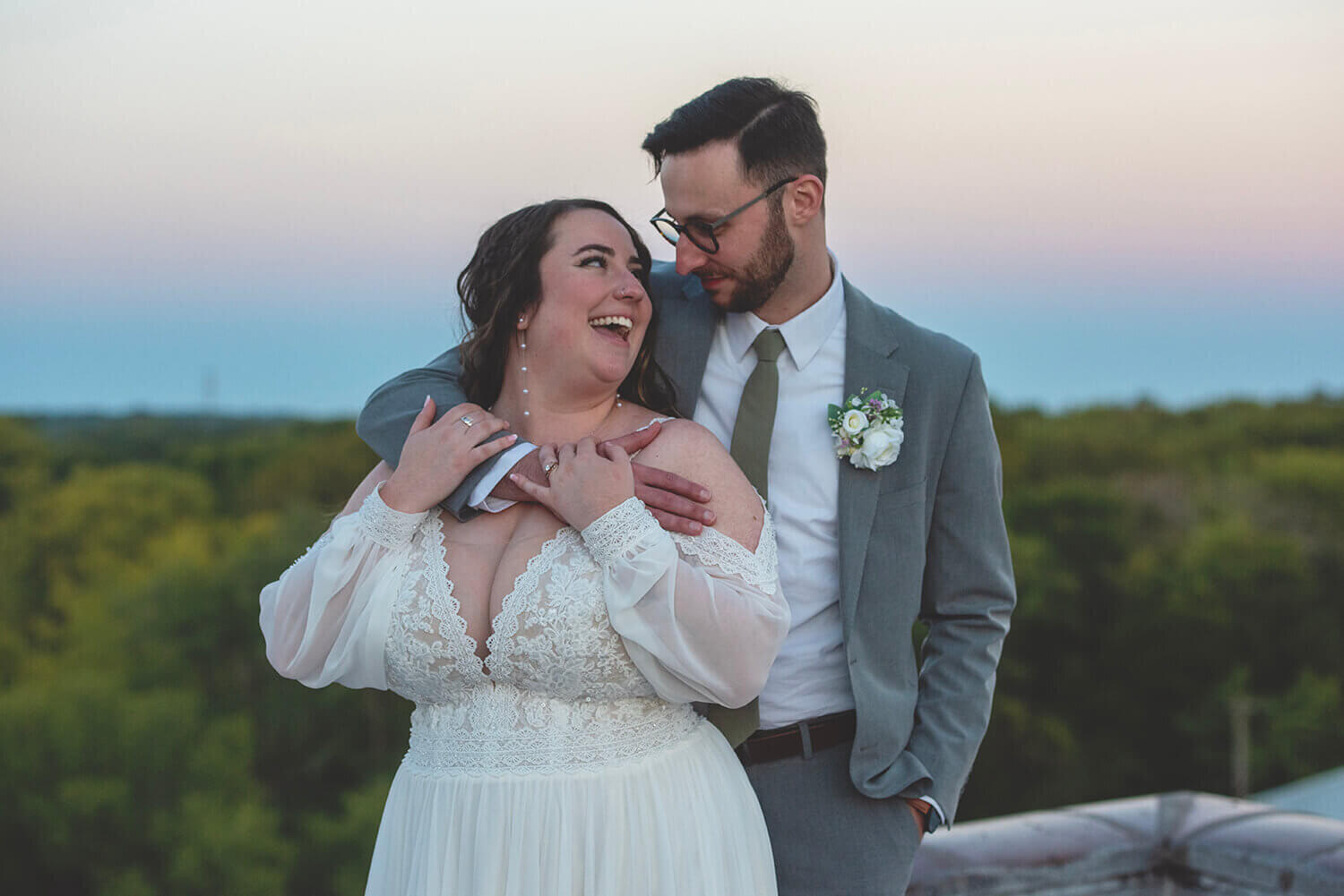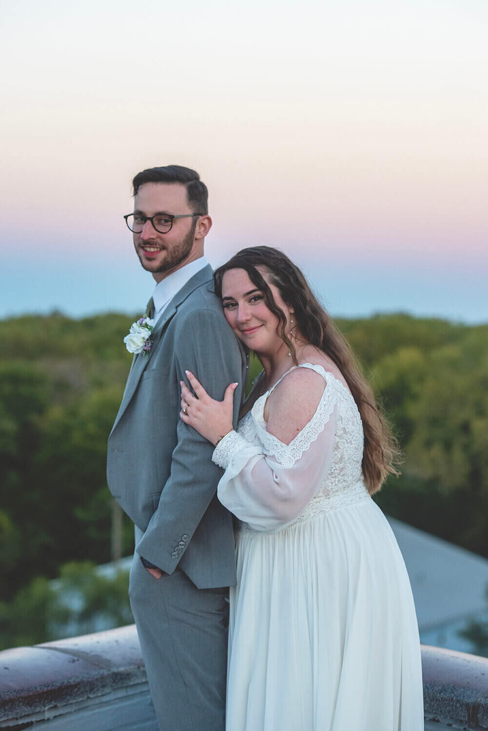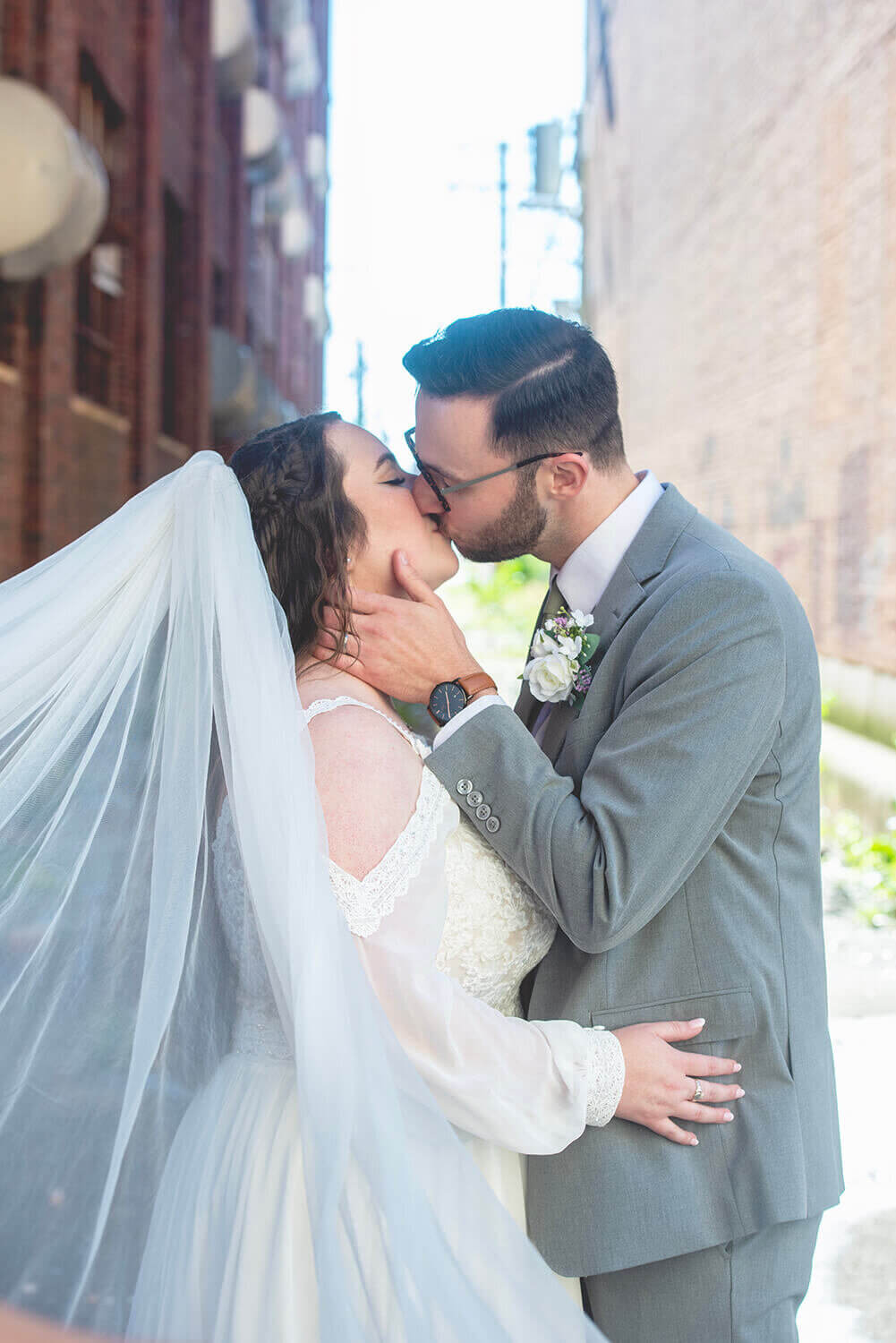 What I love the most about wedding photography at Grand River Hall is the roof. I mean, come on. It’s pretty incredible. While it is sometimes difficult for full bridal party portraits in the middle of the day (with wind and direct sunlight), it is absolutely the best place to be at golden hour and sunset with the bride and groom. Amazing views, city vibes, and what can be a gorgeous sunset is magic here. I also lowkey love the alley across the way and the busted windows on the factory next door.