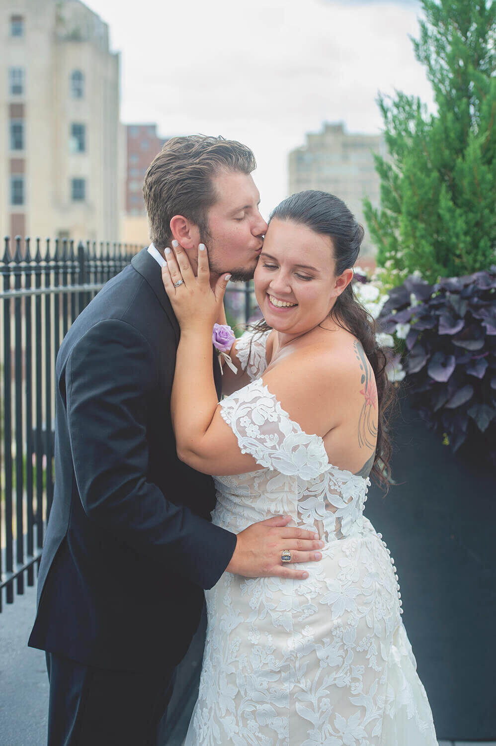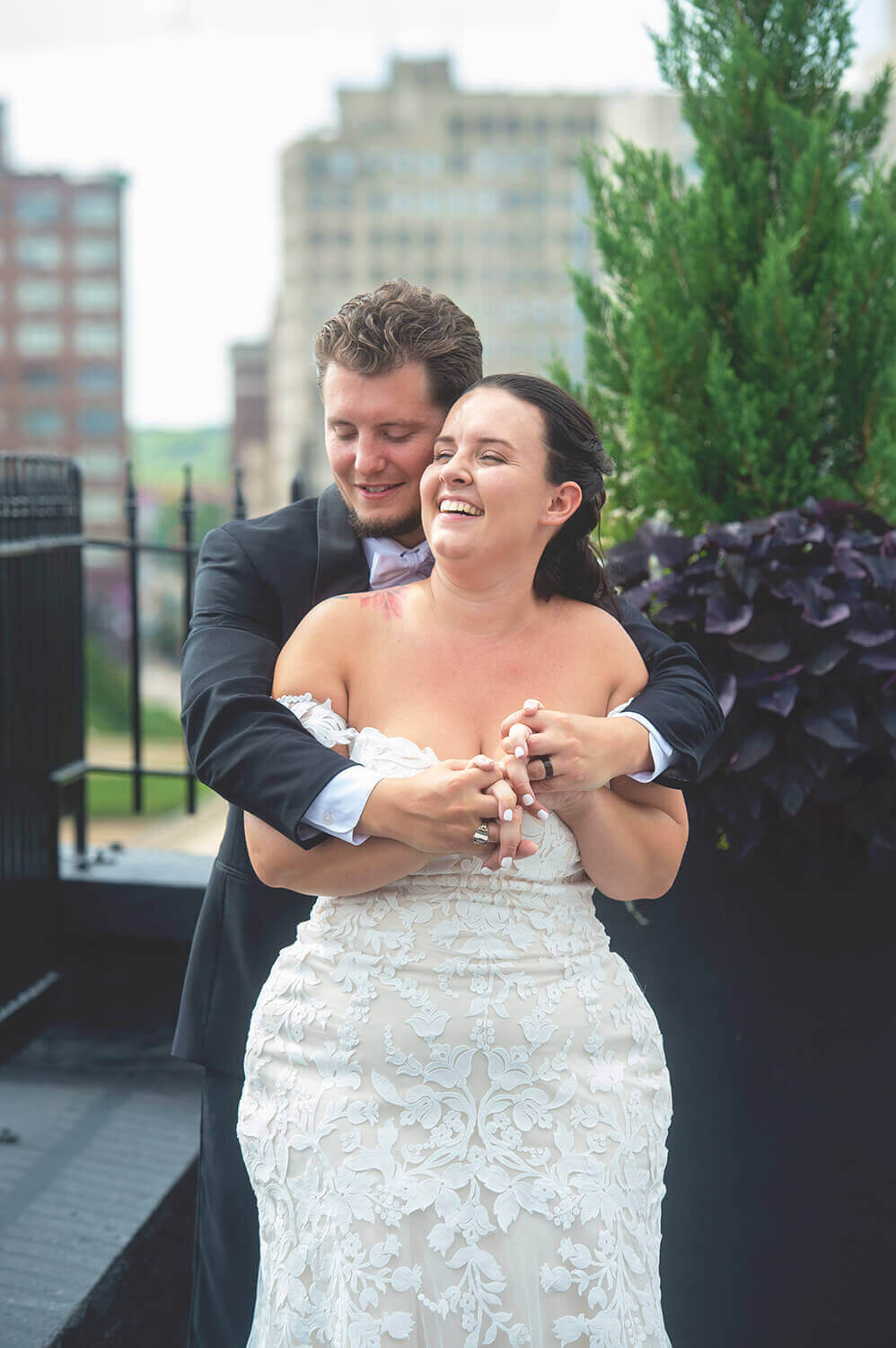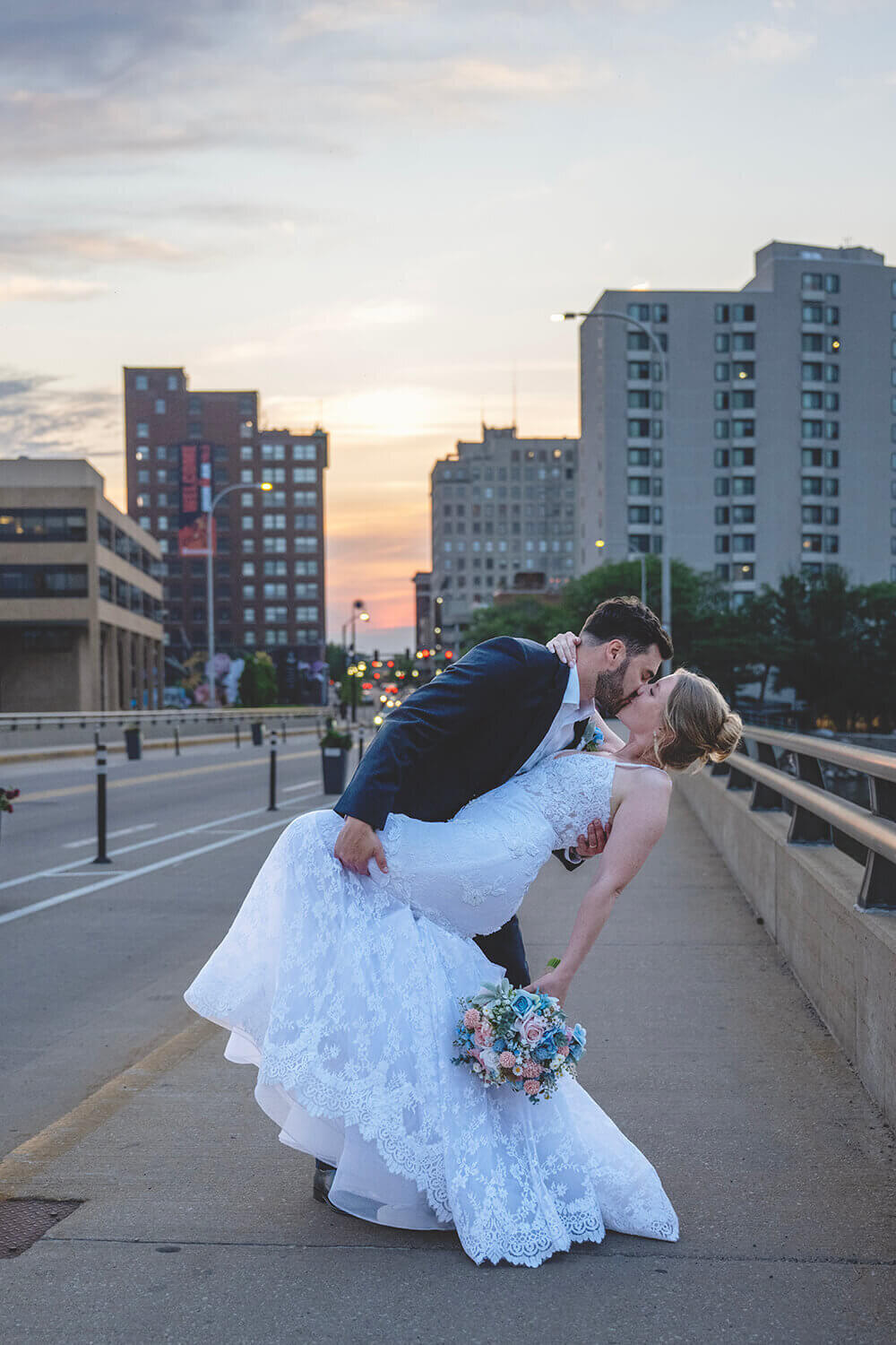 What I love the most about wedding photography at The Standard is the access to my favorite spots in Downtown Rockford. Yes, it has a stunning roof top with the cool gates and a lot of fun architectural spots throughout the floors, but that area of Rockford is my favorite for portraits. The city vibes are strong in that area. But yes, The Standard has some gorgeous spots too!